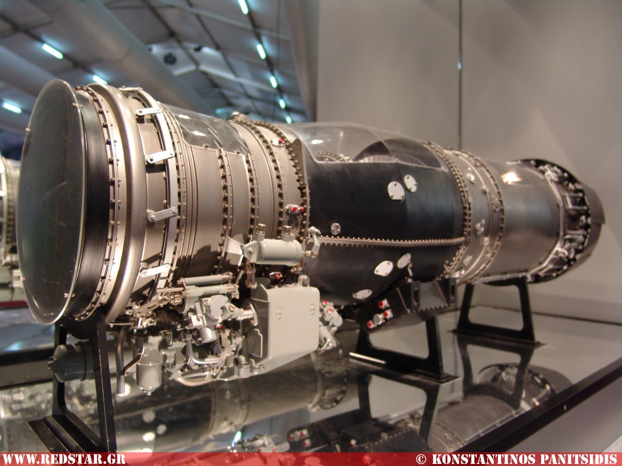 Characteristics: Thrust with afterburner 7.711 kgf. Dry thrust 5.102 kgf. Turbine inlet temperature 1.577oC. Bypass ratio 0,3.