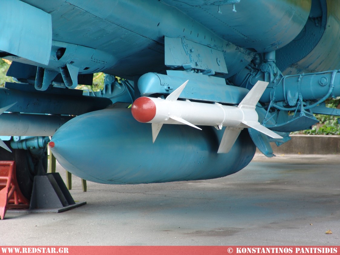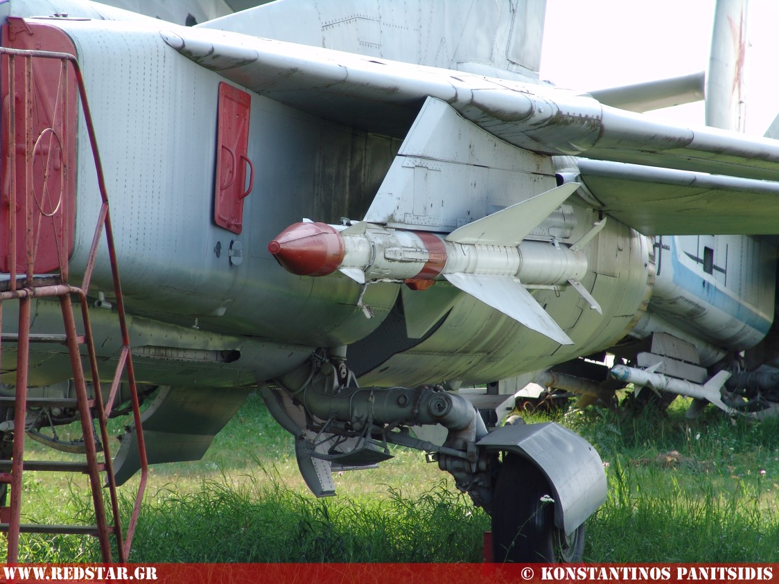| ARMAMENT | One 23-mm GSh-23L with 200 rounds. Number external hardpoints: 6. Transportation of weapons: 2xR-23, R-24, 4xR-60, air-to-surface Kh-23, Kh-25, Kh-29, UR S-5, S-8, S-13 and S-24 pods with cannons, bombs KAB-500KR/L, AB-500. External fuel tank type PTB-800, nuclear bomb. |