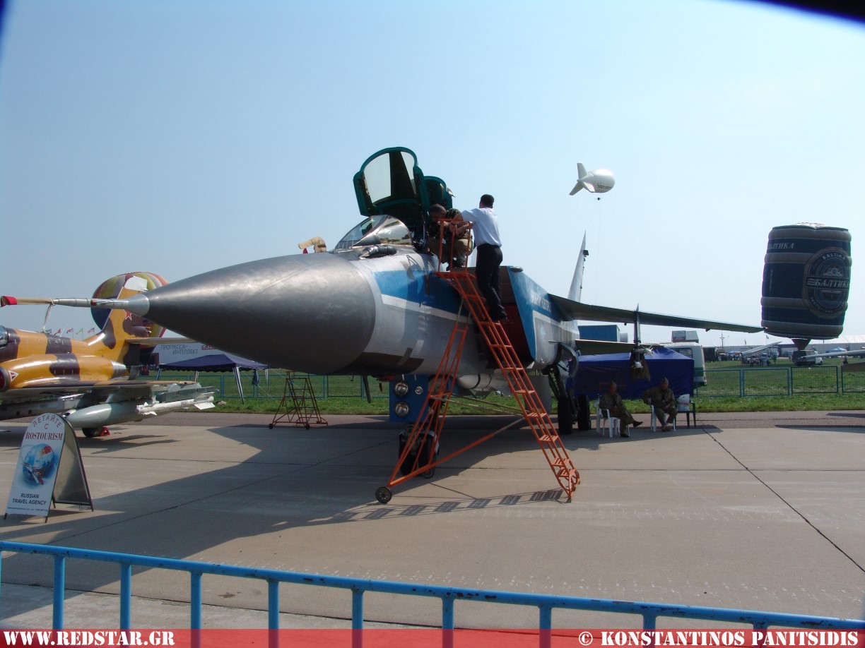 Double, twin-engine, supersonic fighter-interceptor was created on the basis of the MiG-31, in the early 90s. The main difference of the export version was the different equipment (avionics), but with the same capabilities to direct other aircraft like the MiG-21, MiG-23 and MiG-29 to targets. The aircraft was equipped with the “Zaslon” radar (export modification), with the possibility of transportation up to four R-33E long-range missiles (export version) and up to four short-range missiles on pylons under the wing.