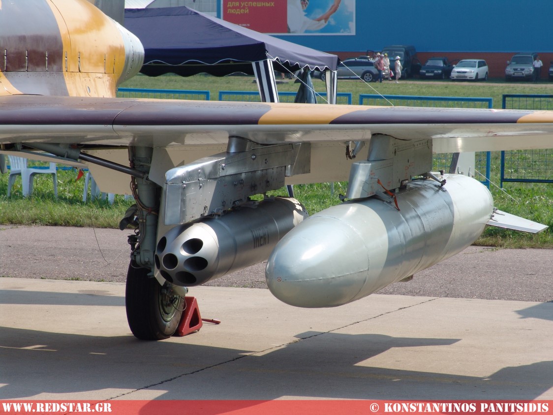 | ARMAMENT | Number external hardpoints: 5. Transportation of weapons: pod with 20 mm cannon, or 2 light bombs two air-to-air missile or two anti-ship missile, two air-launched rockets. |